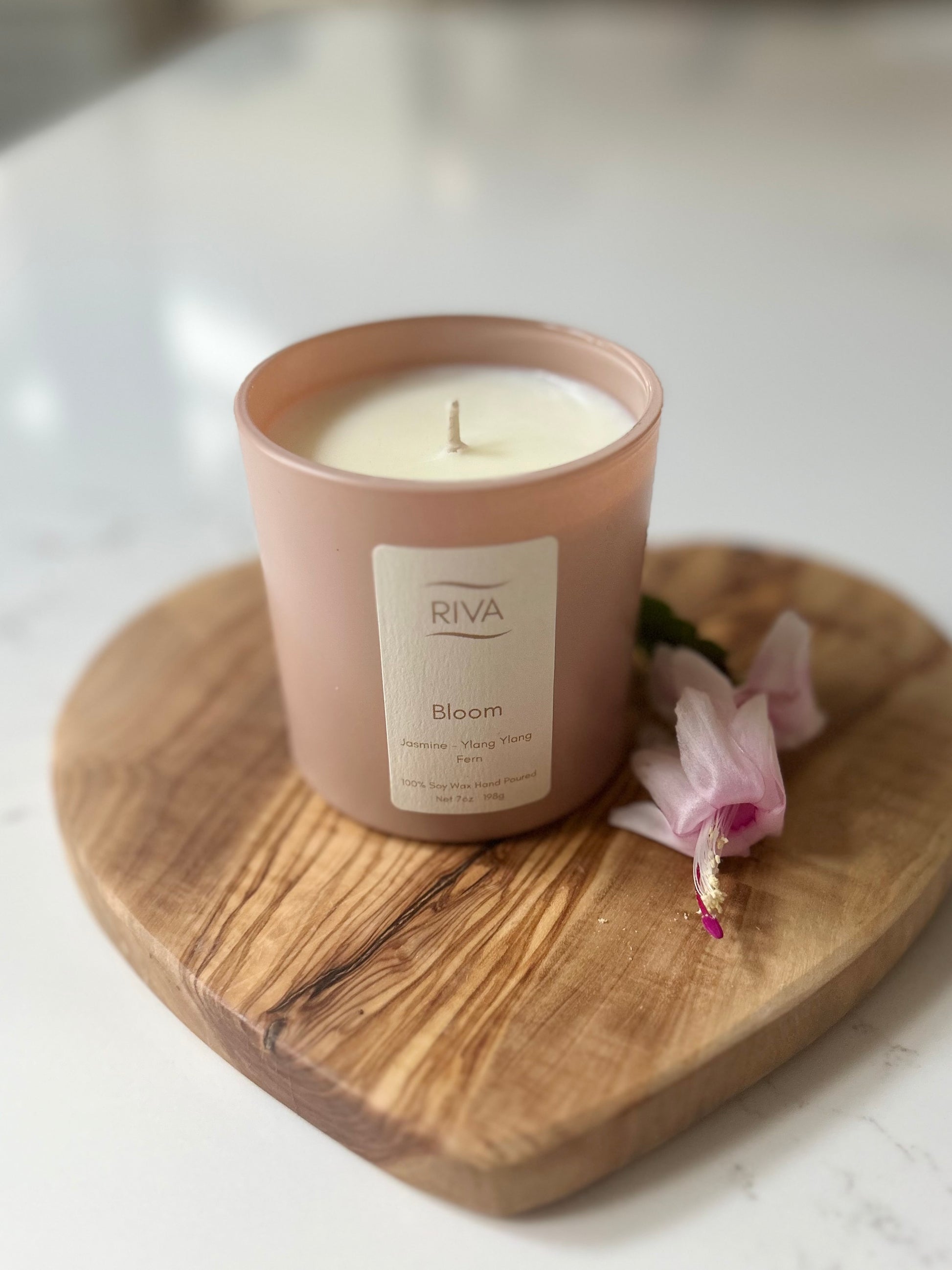 Bloom is a fragrant, floral scent with fresh green notes. The headiness of sweet jasmine and gardenia combines with moss and fern to delight thes senses.