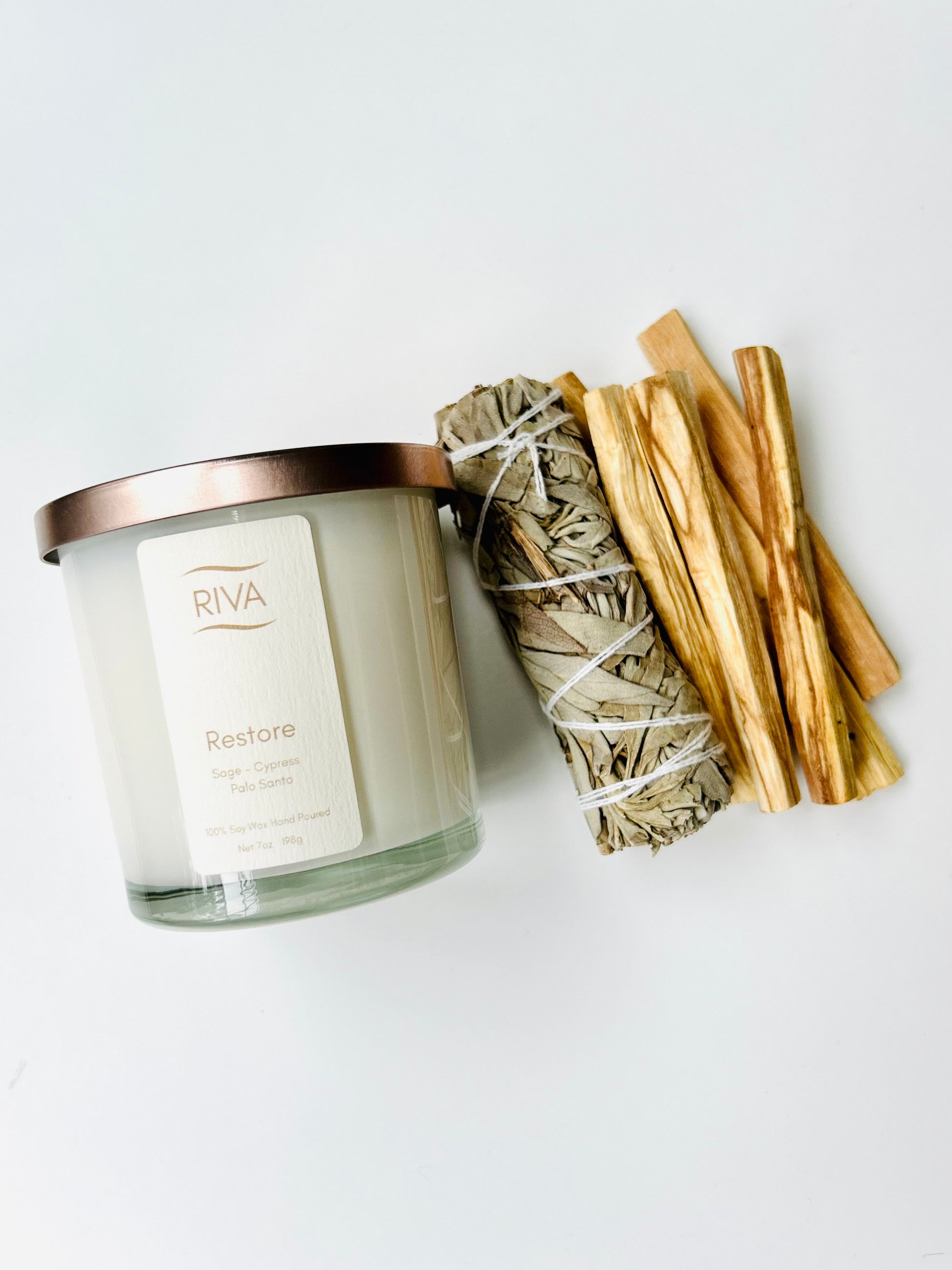 A complex grounding spa scent of sage and cypress to relax and calm the stresses of the day.